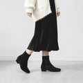 Square toe flat stretch boots with surprisingly high stretch. The simple design makes this pair suitable for any occasion.