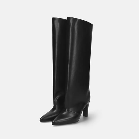 These pointed toe long boots have an elegant toe that is not too long, and have an attractive and timeless silhouette that is comfortable to wear. A fresh pair of shoes with a wide shaft silhouette that is very popular this season. It has a wide straight silhouette that doesn't pick up the curves of your legs, and it also has a style-enhancing effect that makes your legs look longer and straighter.